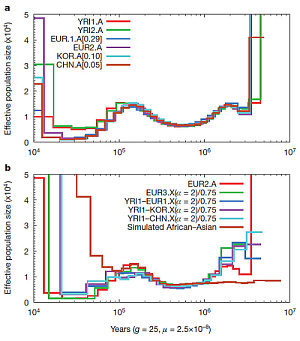 “Second, when we look at non-African individuals from Europe and East Asia, we see a shared history of a dramatic reduction in population, or bottleneck, starting about 60,000 years ago, as others have also observed. But, unlike previous studies, we also see evidence for continuing genetic exchange with African populations for tens of thousands of years after the initial out-of-Africa bottleneck until 20,000 to 40,000 years ago.