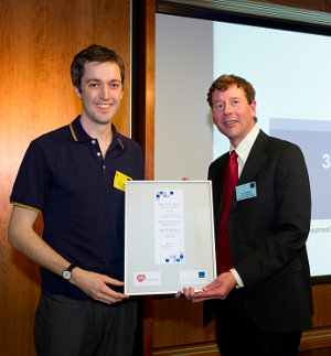 Dr Pettitt receiving his prize certificate from Professor Paul Matthews OBE, Vice-President of Imaging at GlaxoSmithKline.