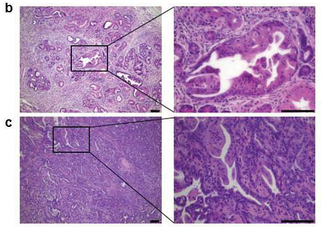 The researchers used a mouse model of pancreatic cancer to screen for genes that speed up pancreatic cancer growth using a technique called ‘Sleeping Beauty transposon mutagenesis’. This system uses mobile genetic elements that hop around the cell’s DNA from one location to the next. Cells that acquire mutations in genes that contribute to cancer development will grow out and ‘driver’ cancer genes may be identified.
