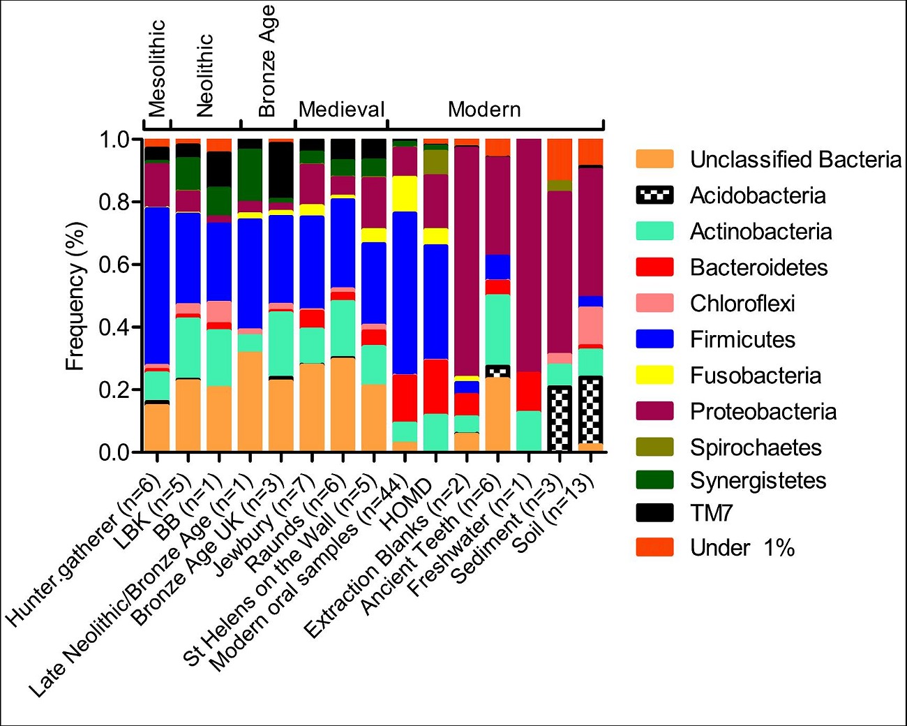 This study provides the first views about the timing and nature of changes in human oral bacterial composition and diversity over the past 7,500 years. This method has the potential to look in new ways directly at the effects of nutritional and cultural transitions through time.