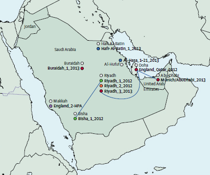 Sanger Institute researchers sequenced and analysed the genomes of MERS-CoV samples taken from 21 patients across the Kingdom of Saudi Arabia. The researchers combined the geographic locations of the people with the time they were infected and the amount of genetic differences seen between the virus genomes. This work gave a higher resolution picture of how the virus has spread and how its genome has changed over time.