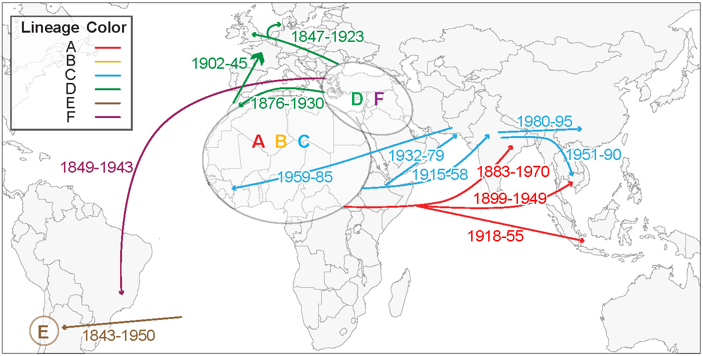 In two new studies, scientists use genome sequencing of worldwide samples to show that bacteria can take very different routes to becoming a successful disease. Researchers can use these large-scale approaches to track pathogen transmission patterns across the globe and therefore possibly to predict the emergence and spread of a new disease.