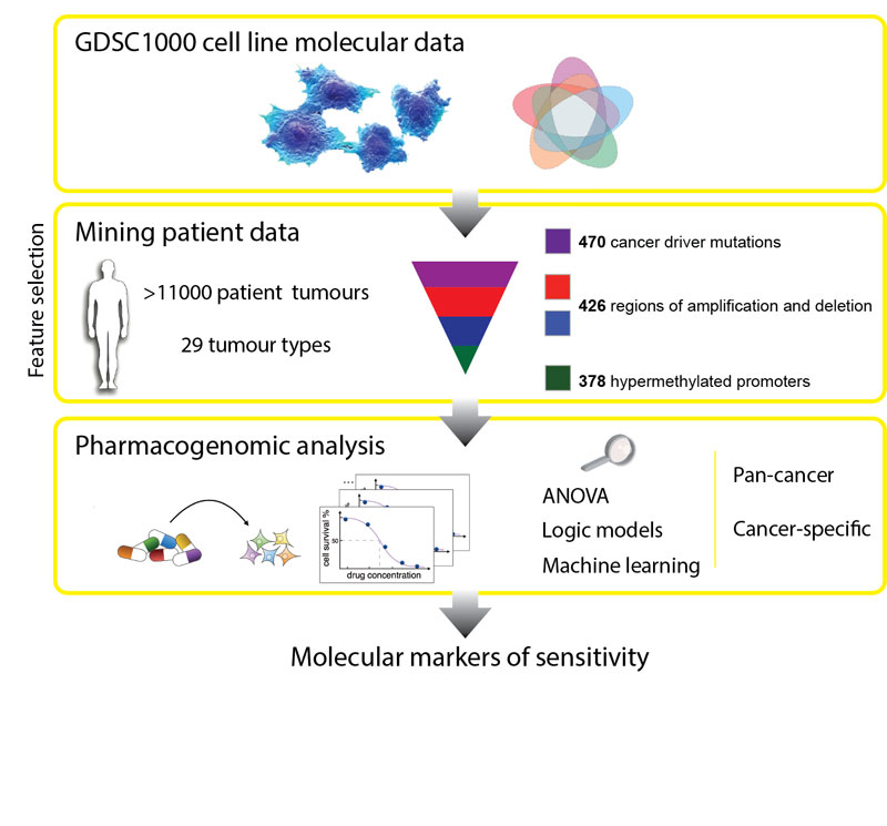 They built a catalogue of the genetic changes that cause cancer in patients and mapped these alterations onto 1000 cancer cell lines. Next, they tested the cell lines for sensitivity to 265 different cancer drugs to understand which of these changes effect sensitivity.