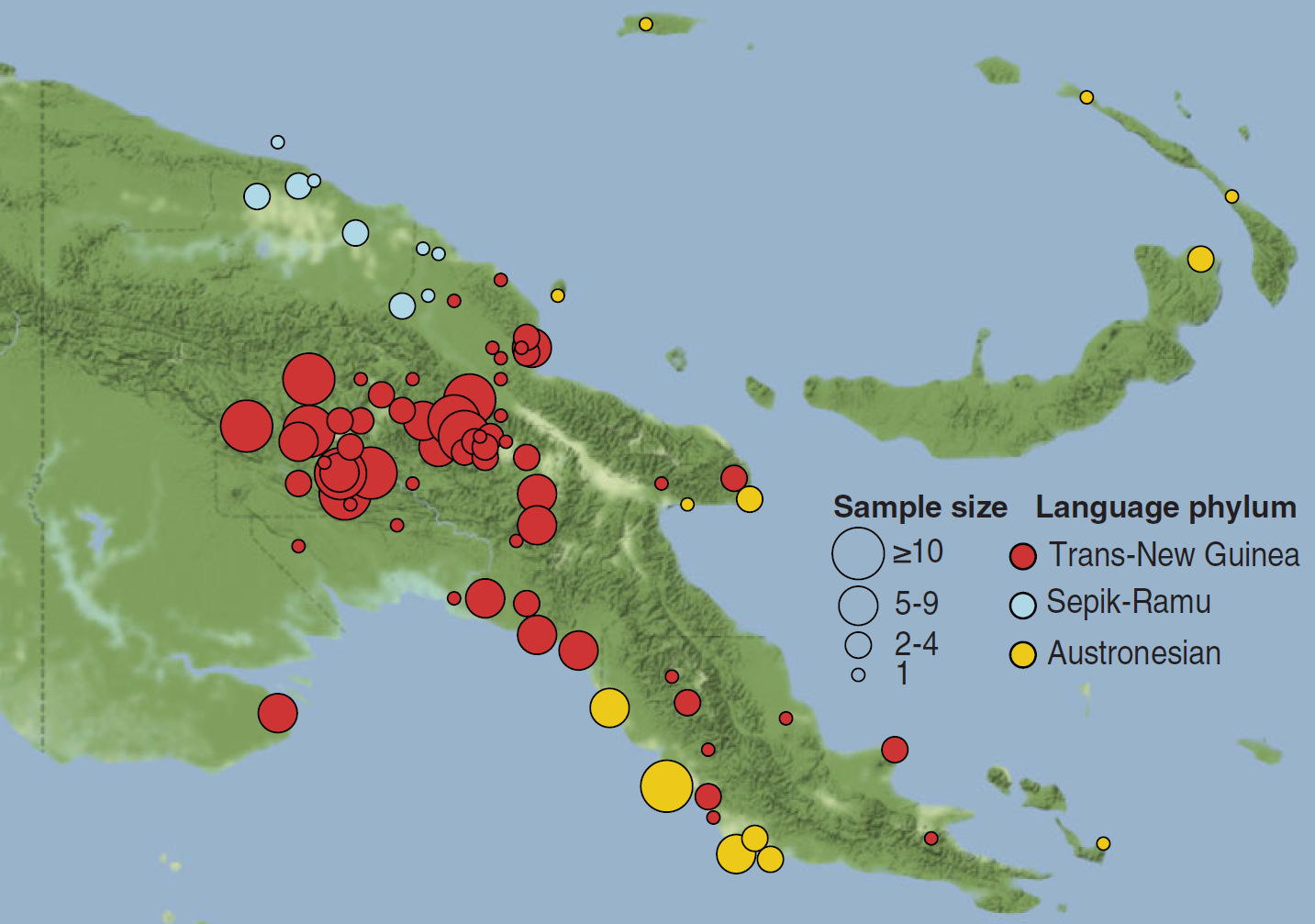 With approximately 850 domestic languages, which account for over 10 per cent of the world’s total, Papua New Guinea is the most linguistically diverse country in the world. To discover if the linguistic and cultural diversity was echoed in the genetic structure of the population, researchers studied the genomes of 381 Papuan New Guinean people from 85 different language groups within the country.