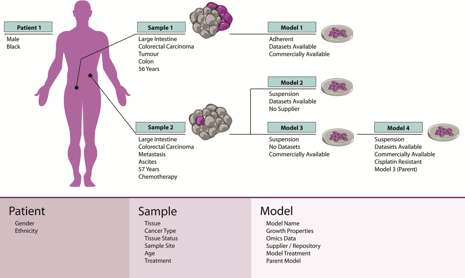 Schematic of the heirarchy used by the Cell Models Passports to capture the relationships that exist between cell samples. Image credit: Nucleic Acids Research (2018) DOI:10.1093/nar/gky872