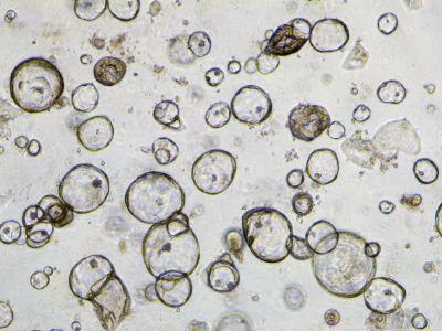 Oesophageal organoids: clusters of cells that constitute mini organs in a dish.  Image credit: Wellcome Sanger Institute, Genome Research Limited