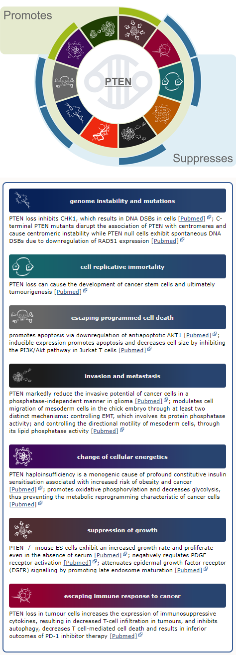 For the first time ever, functional changes to these genes are summarised in terms of the ten Cancer Hallmarks – biological processes that drive cancer. Mutations in some genes lead to errors in repairing DNA, whereas mutations in other genes can suppress the immune system or promote tumour invasion or spreading. Across the 700 genes in the Cancer Gene Census, many have two or more different ways of causing cancer. These are often different and sometimes contradictory depending on the tumour type, and are all described in this single resource.