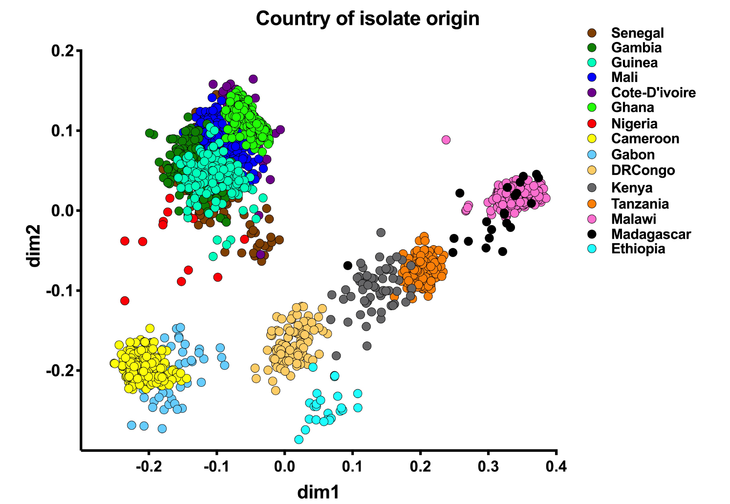 Samples of P. falciparum were collected from 15 African countries by PDNA and their genomes sequenced at the Wellcome Sanger Institute as part of the MalariaGEN data-sharing network**. The genetic data on these samples, along with other African data that have previously been generated and openly released by MalariaGEN, were analysed to trace ancestral connectivity between the various parasite populations.