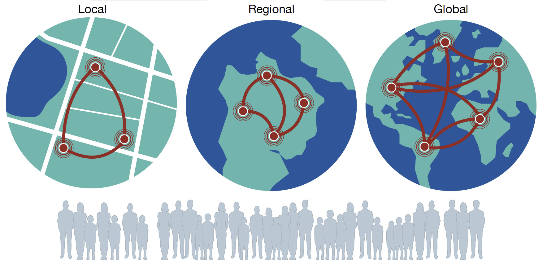 - enable descriptions of complex relationships and interactions across population levels (local, national, international).