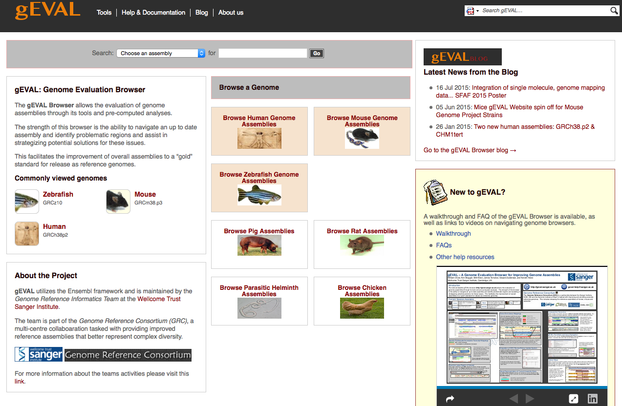 The gEVAL Browser allows the evaluation of genome assemblies through its tools and pre-computed analyses.