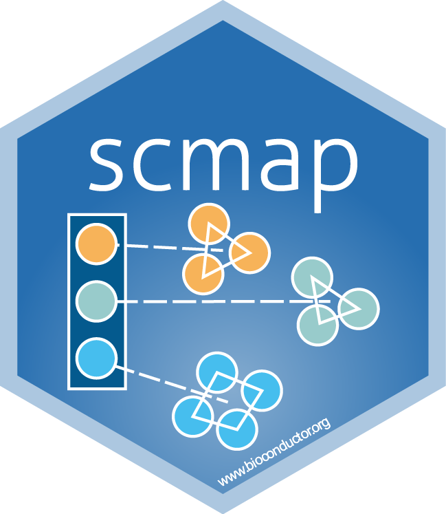 Single-cell RNA-seq (scRNA-seq) is widely used to investigate the composition of complex tissues since the technology allows researchers to define cell-types using unsupervised clustering of the transcriptome. However, due to differences in experimental methods and computational analyses, it is often challenging to directly compare the cells identified in two different experiments. scmap is a method for projecting cells from a scRNA-seq experiment on to the cell-types or individual cells identified in a different experiment.